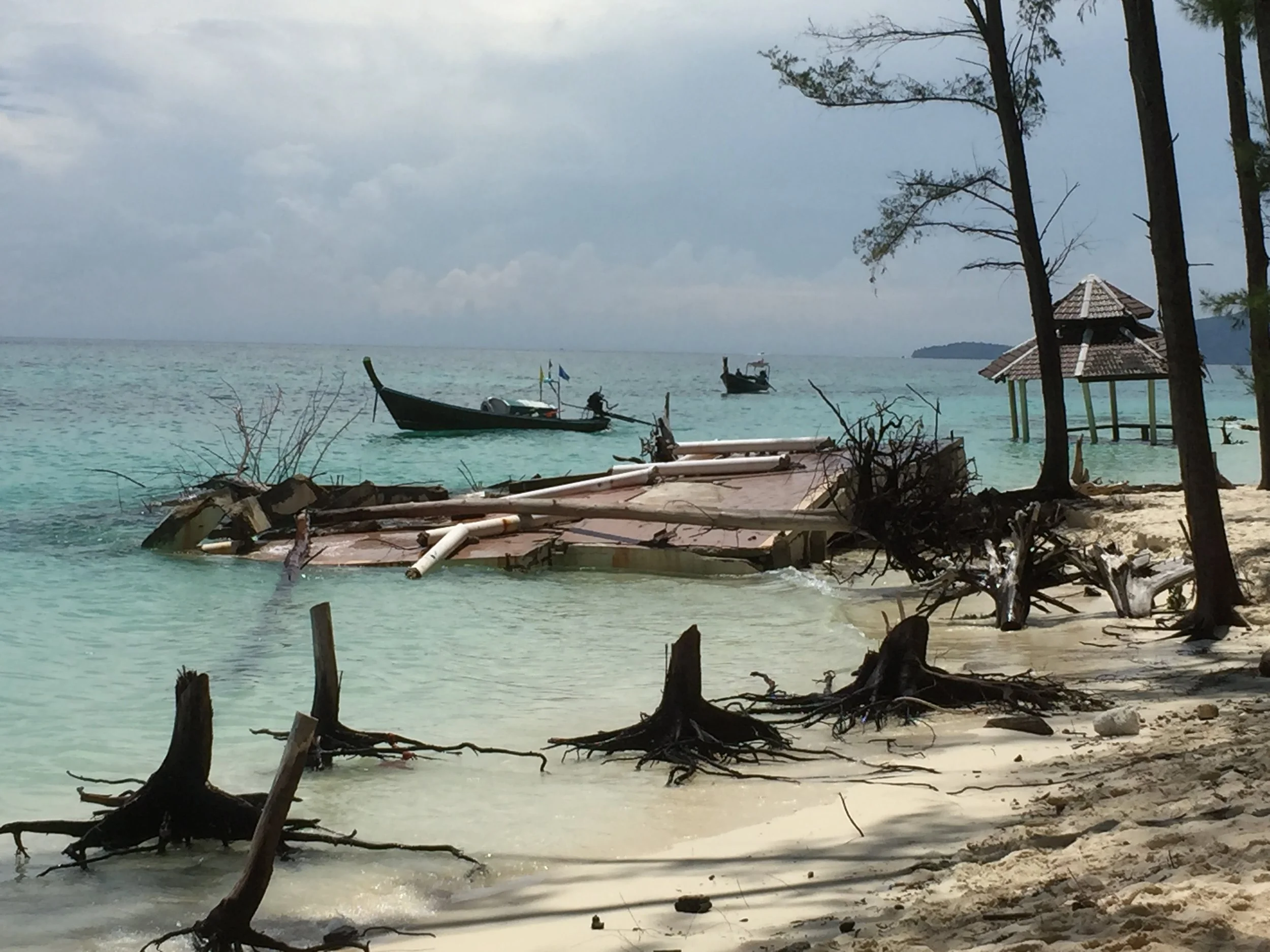Residual damage from storms that swept through Thailand October 2014, 1 year before our visit.